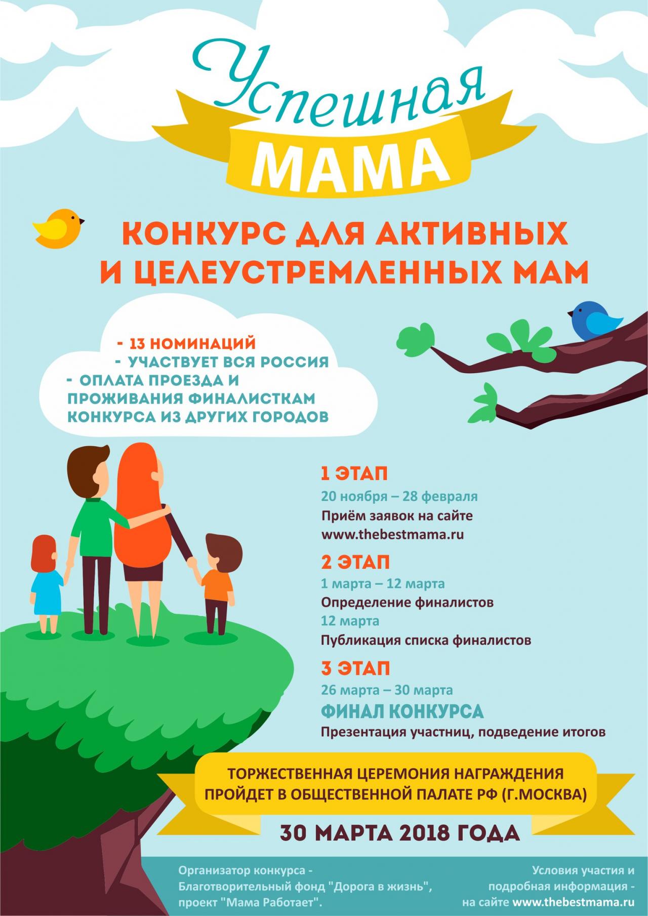 Проект «Мама Работает» помогает молодым мамам получить образование, найти работу или открыть свой бизнес. В 2016 году участие в конкурсе приняли тысячи мам со всей России, а 10 из них стали победителями финала.