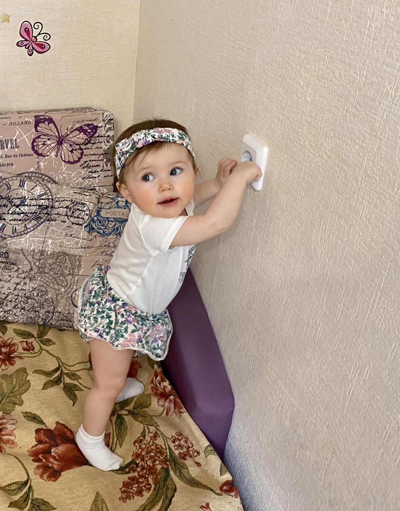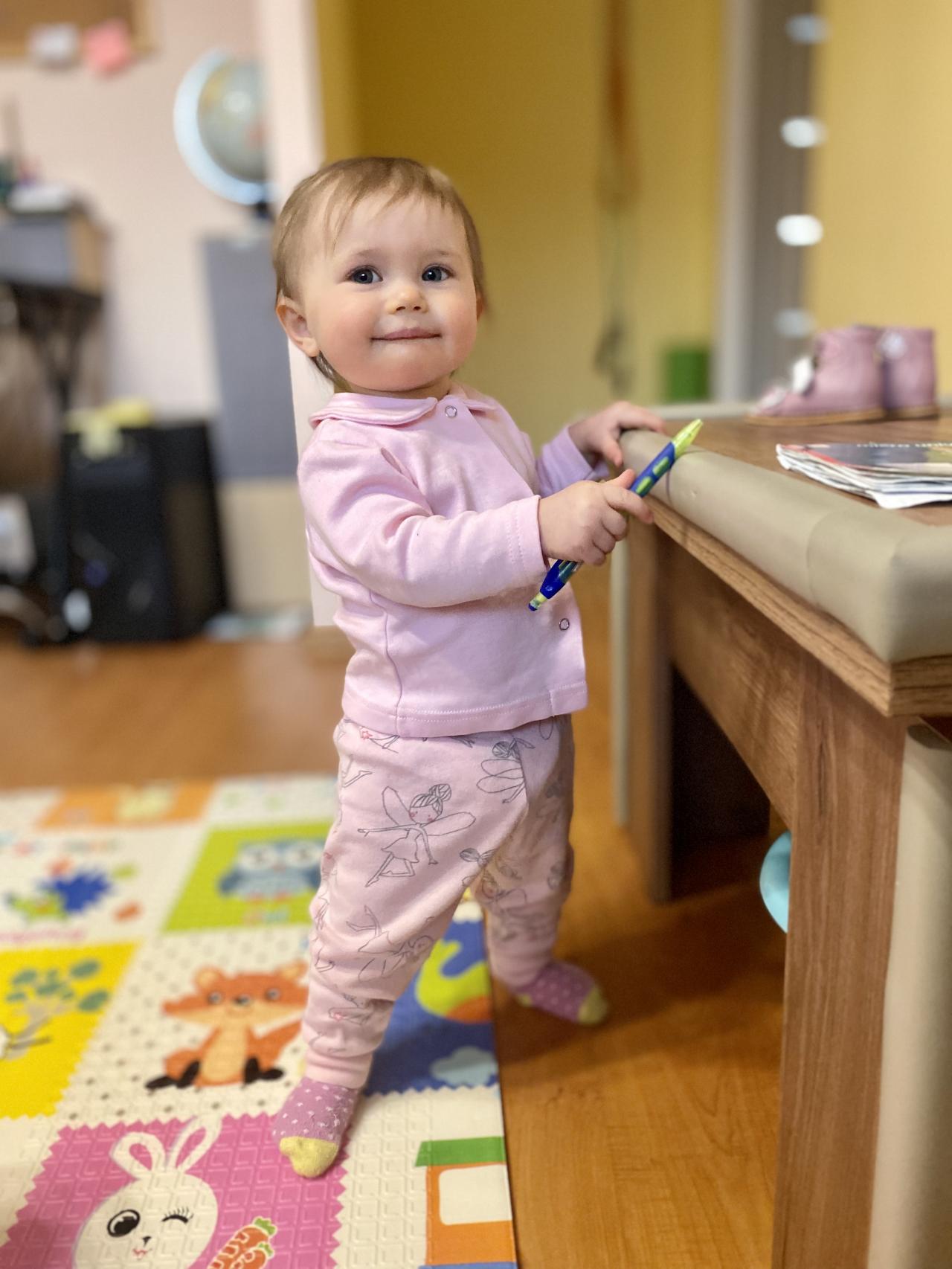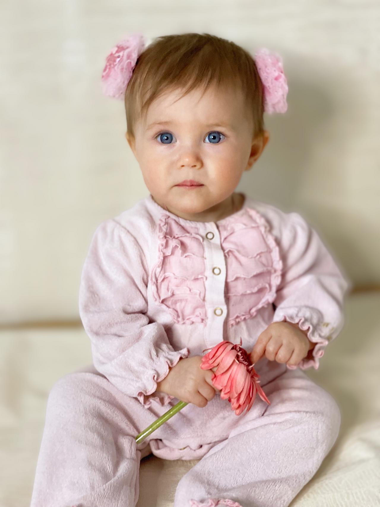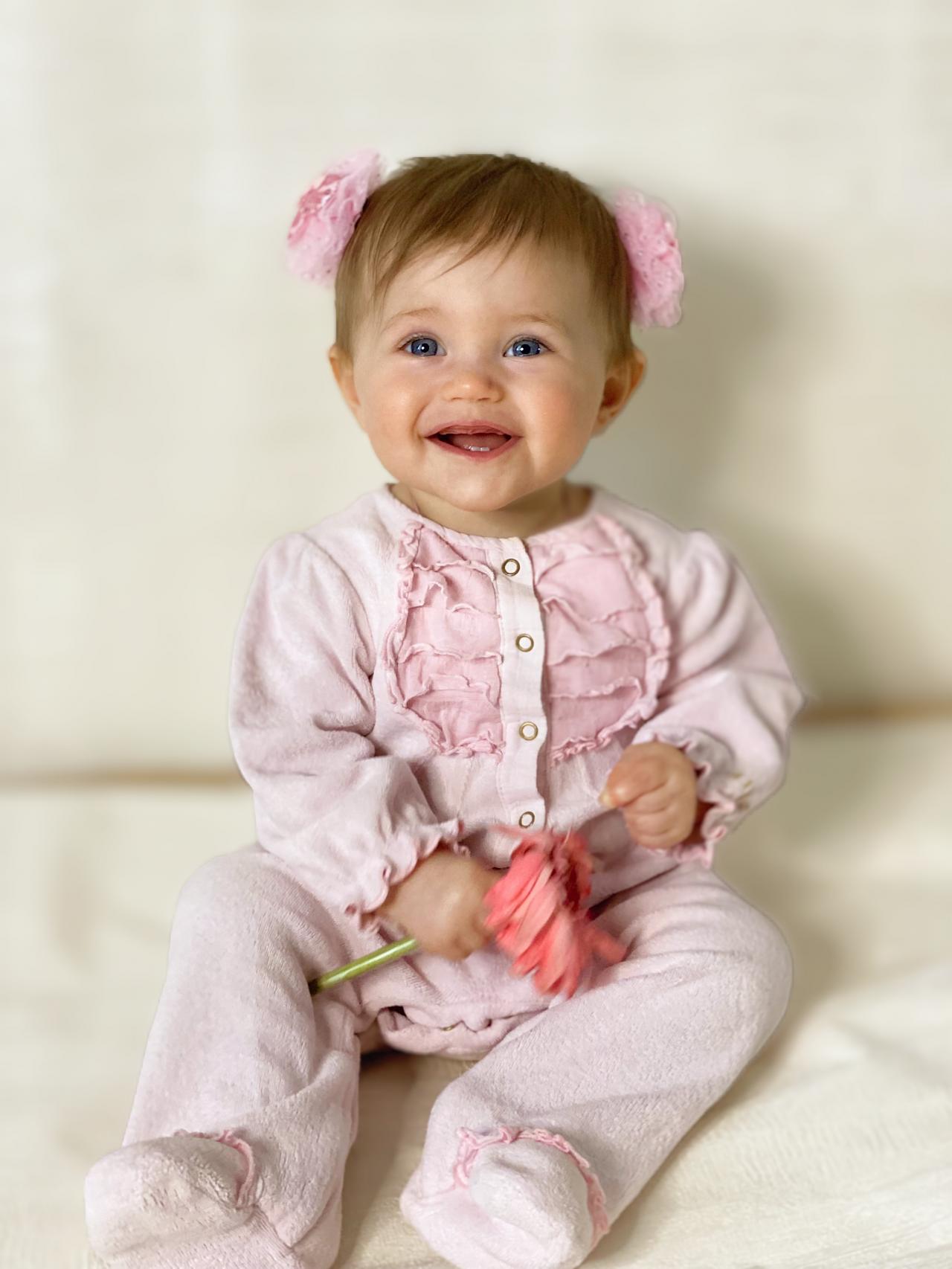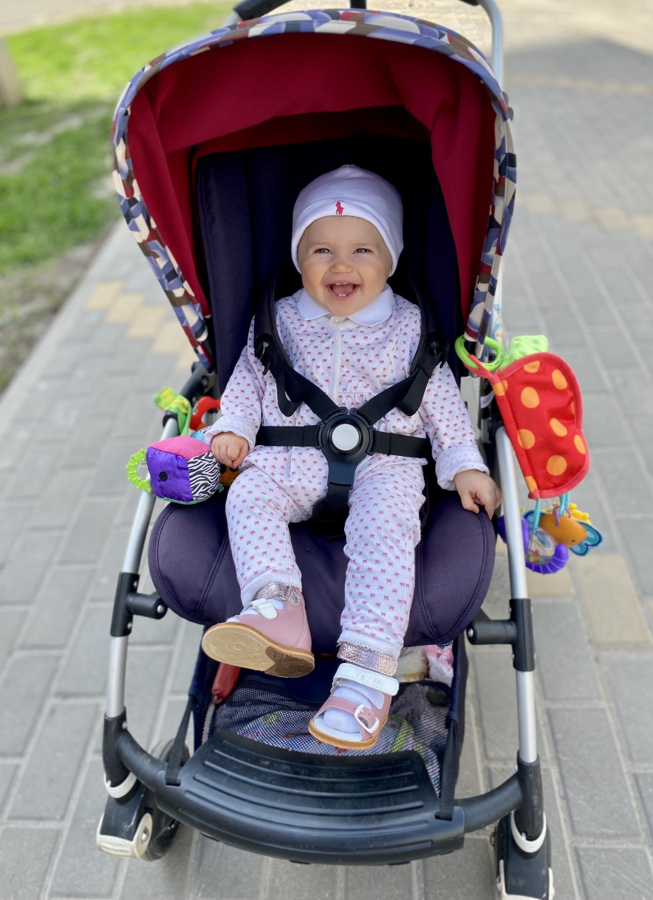 Девочка очень улыбчивая, позитивная, не капризная. Милые правильные черты лица.