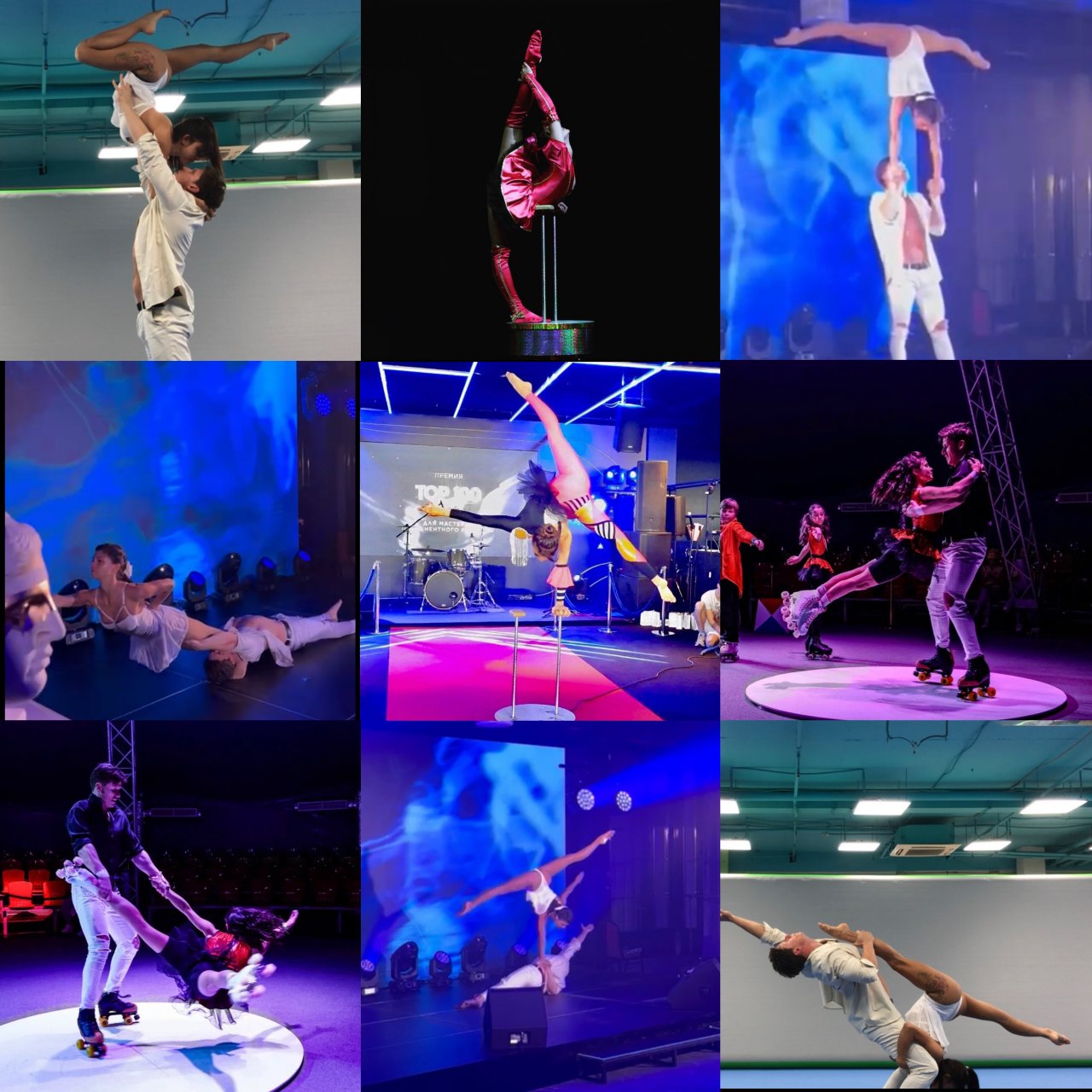 Ручной Эквилибр, хулахупы, акробатика, воздушная гимнастика. Номера с партнером: номер на роликовых коньках и акробатическая пара.