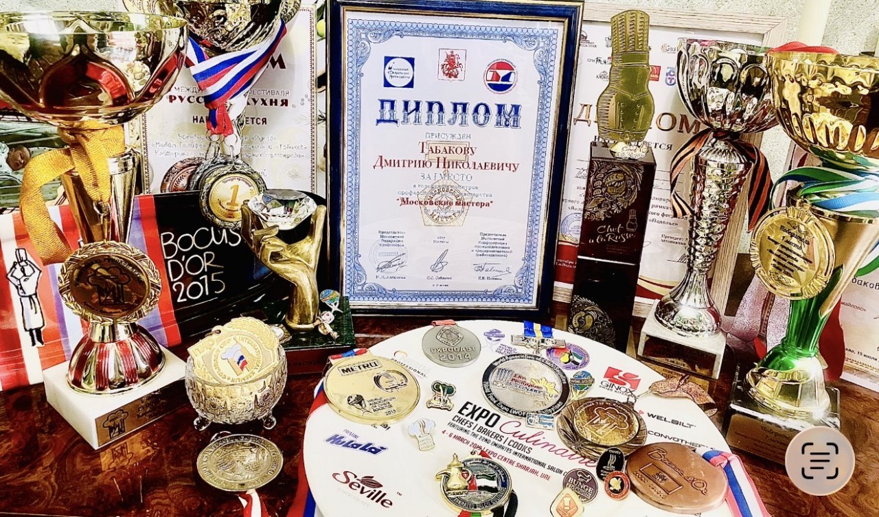 Две серебряных и одна золотая медаль в Интернациональном кулинарном Кремлевском кубке 2013 г. В номинациях: «Основное ресторанное блюдо из мяса», Черный ящик «Основное ресторанное блюдо из рыбы», праздничный обед на одного человека (без дегустации).