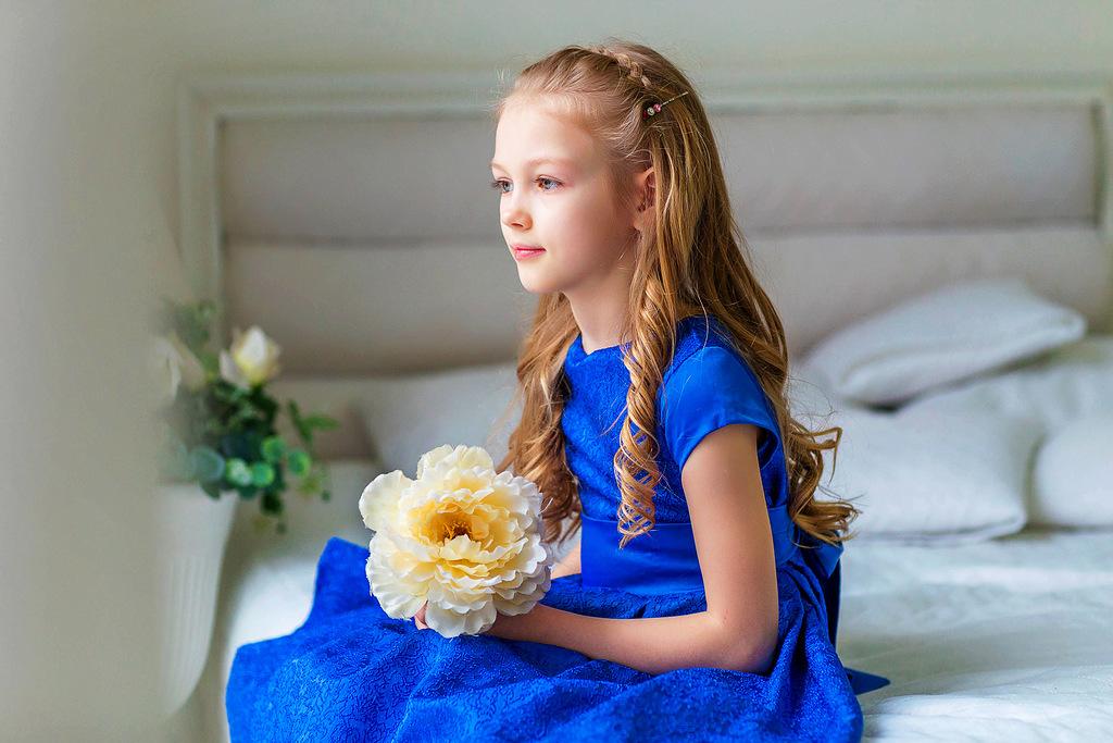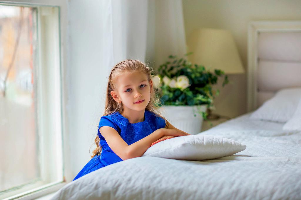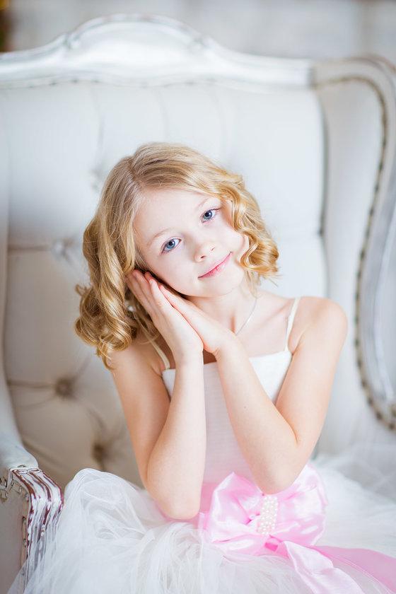 Хрупкая белокурая девочка . Улыбчивая и любознательная . Легко идет на контакт. Занимается танцами и рукоделием .