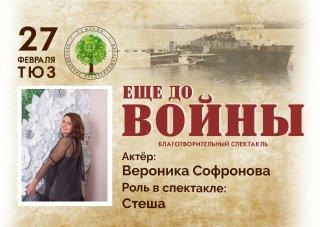Играла роль второго плана в благотворительном спектакле "Еще до войны", на сцене ТЮЗа